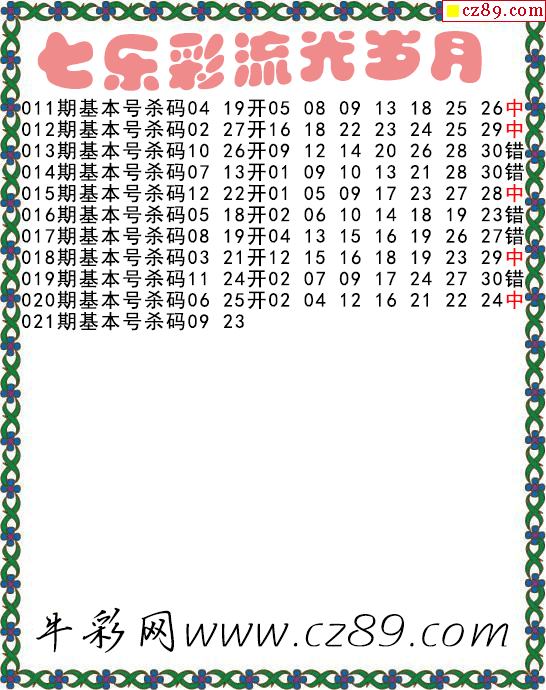 七乐彩2026021期流光岁月杀码图谜 10中5