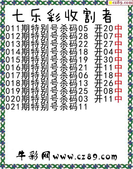 七乐彩2026021期收割者图谜 10中10