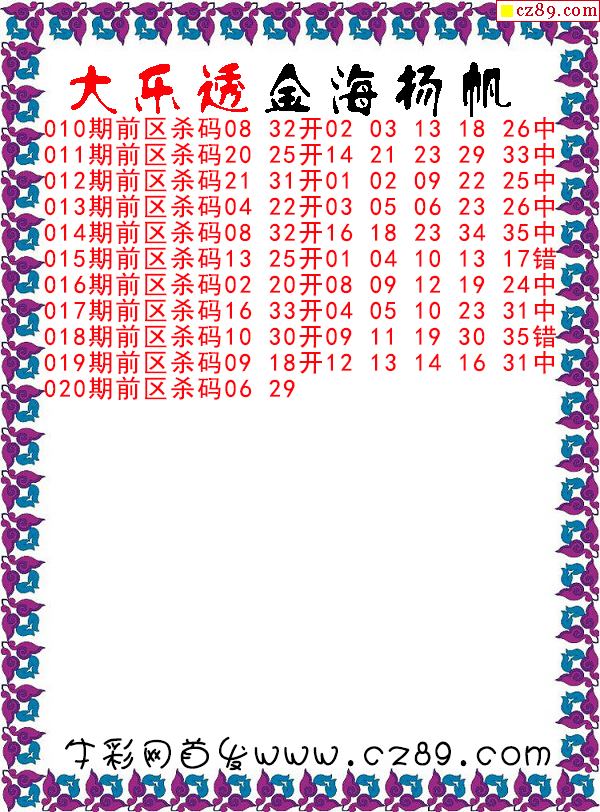大乐透2026020期金海扬帆前区杀码图谜 10中8