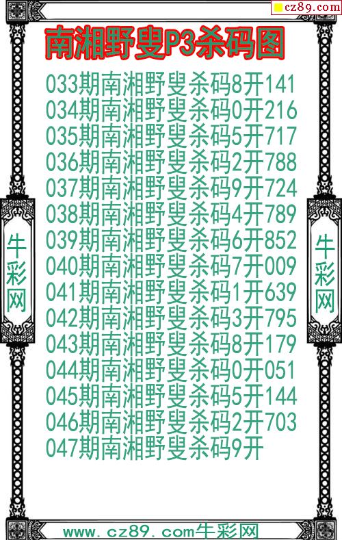 26年047期南湘野叟P3杀码图