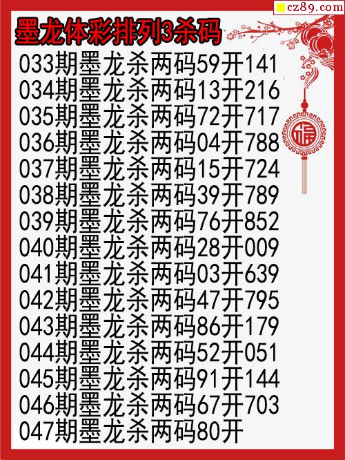 26年047期墨龙体彩排列3杀码图