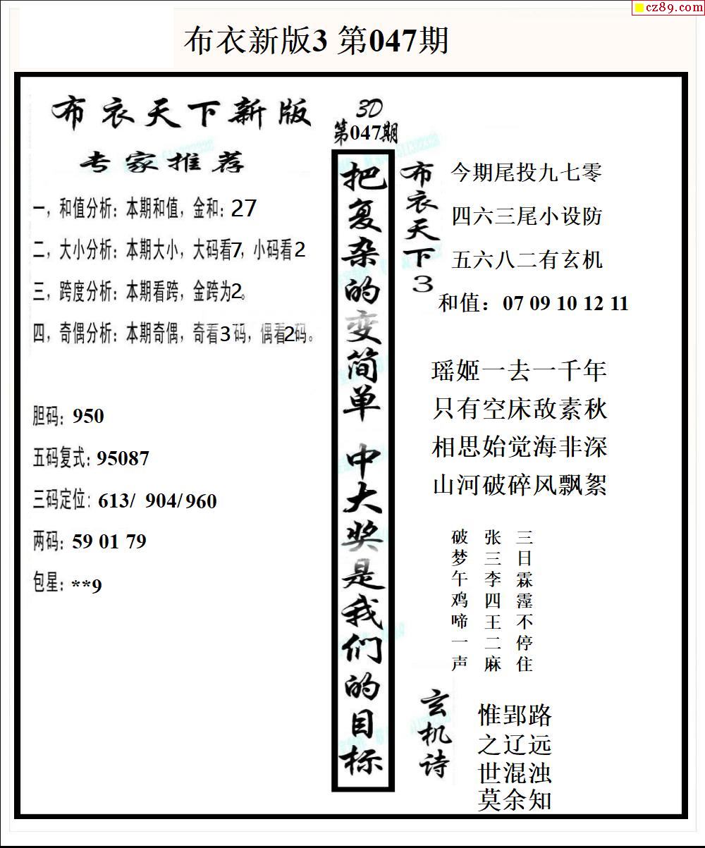 2026047期3d图谜汇总(五)