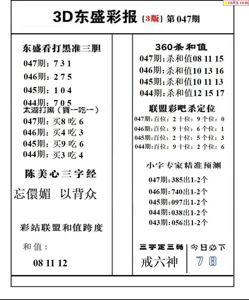 福彩3D2026047期东盛彩报+精品三毛会员版