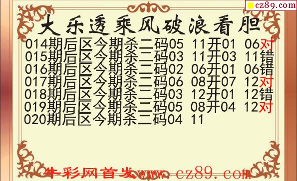 大乐透020期牛彩特邀专家前区后区杀号定胆图表