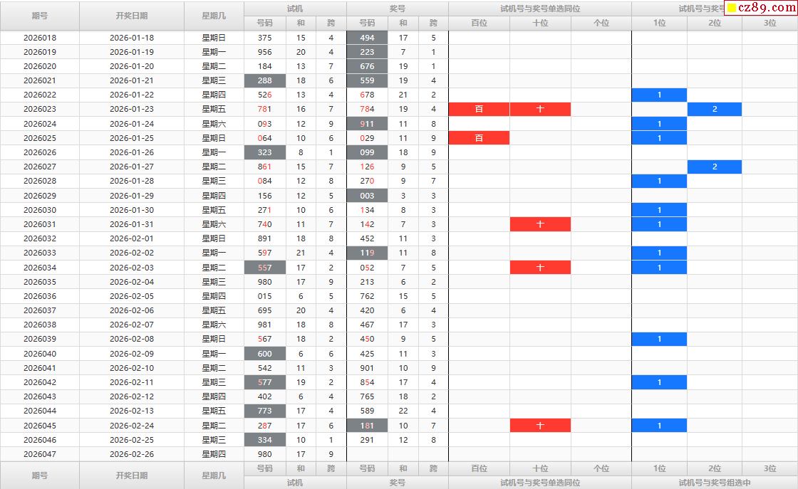 千禧2026年047期3d试机号988试机号对应码375
