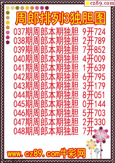 2026年048期牛彩网体彩P3画迷图谜汇总分享