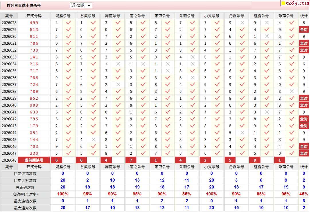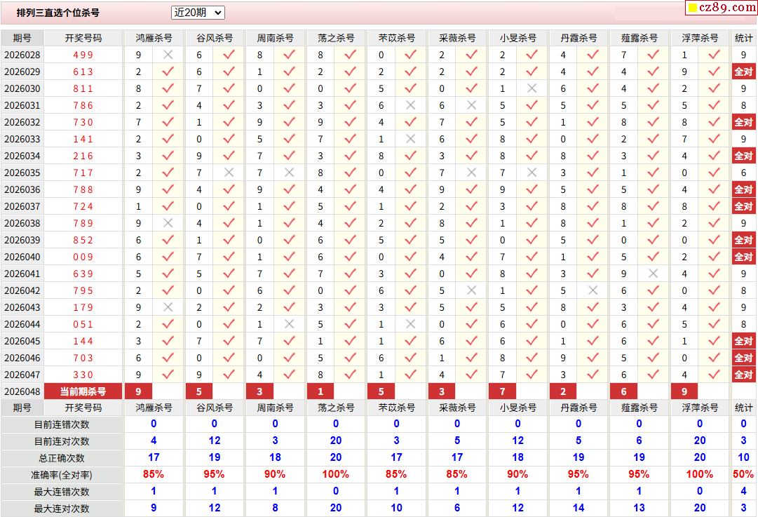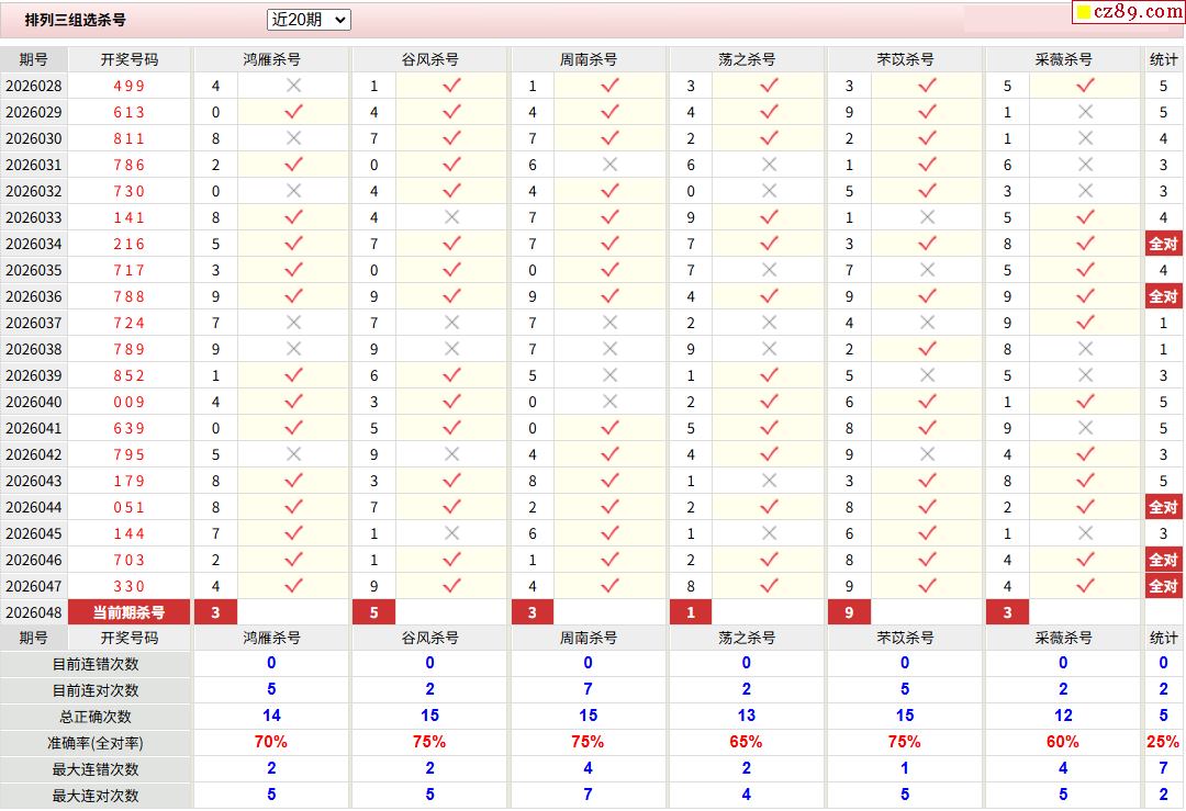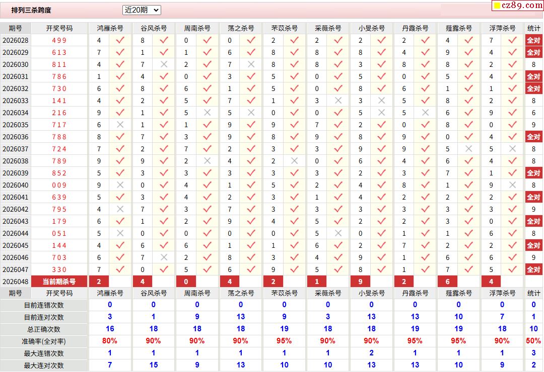 26年048期彩宝贝专家体彩P3杀号定码图表