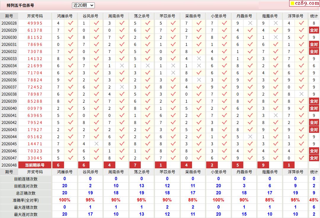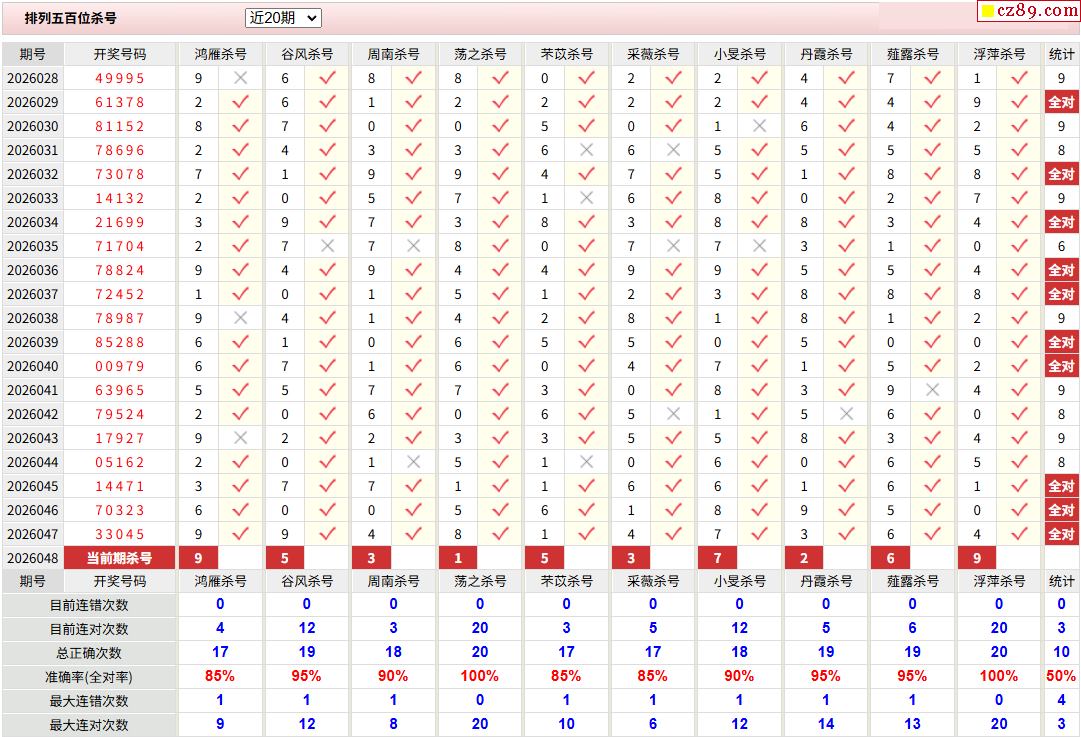 048期彩票专家体彩P5杀号推荐图表