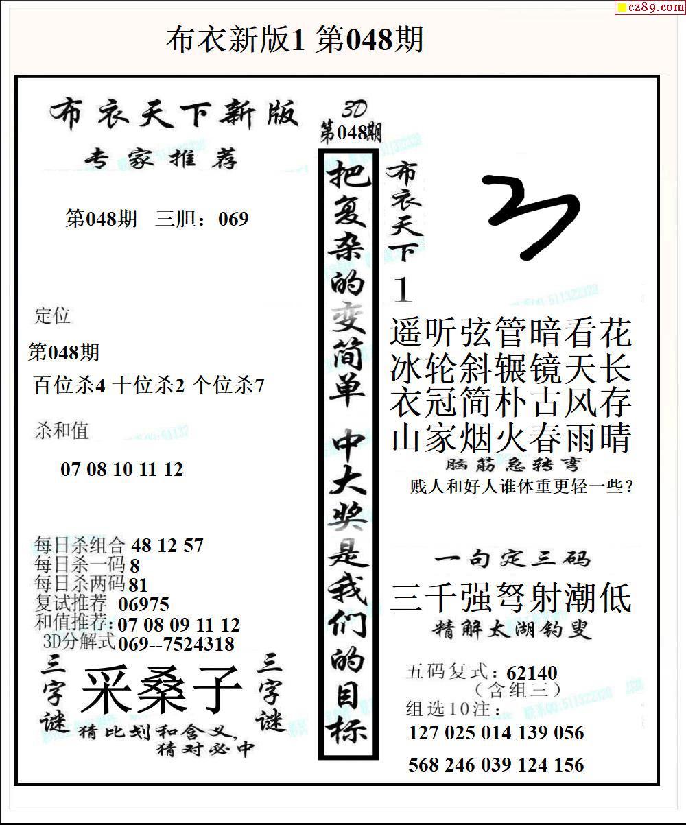 2026048期3D图谜汇总(七)