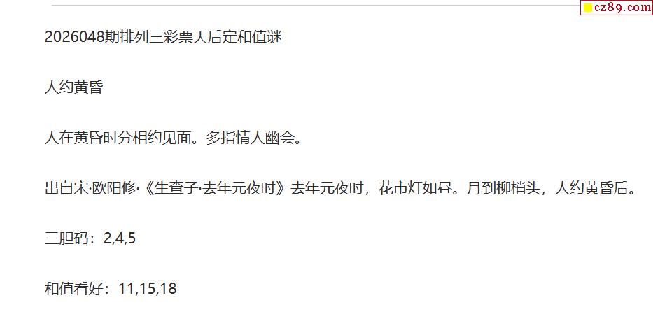 体彩P3字谜汇总2026年048期超级马克p3今日字迷总汇