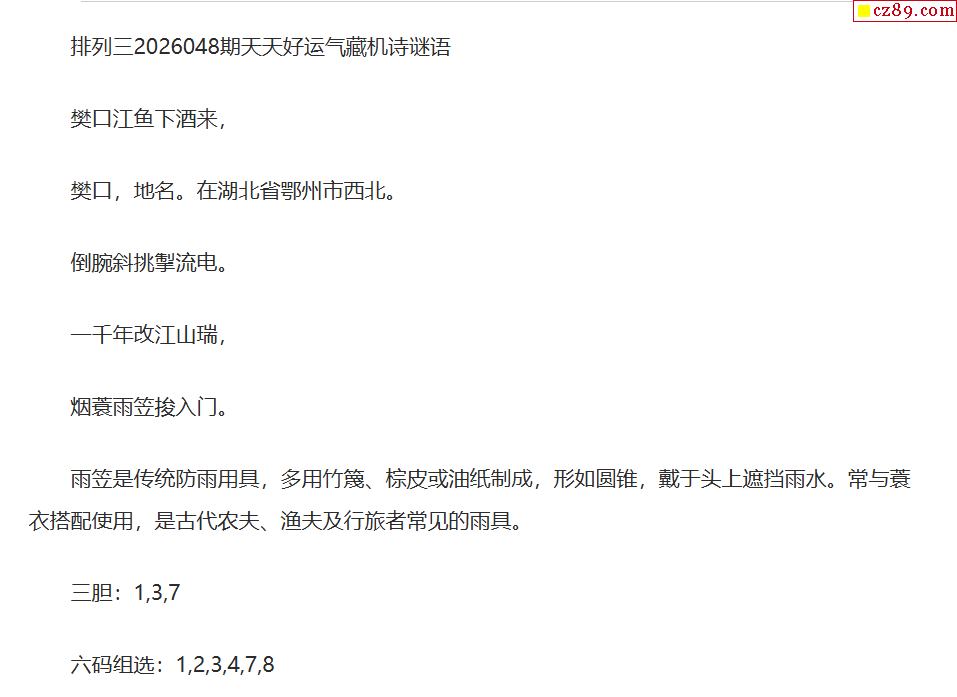 2026048期排列三蛄峂一语定位字谜