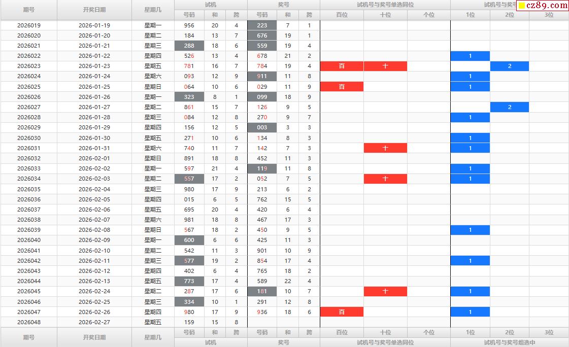 千禧3D试机号2026048期065关注数539金码3试机号对应码400