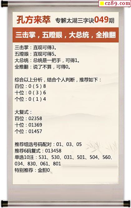 大总统解26年049期3d太湖钓叟之 全推翻
