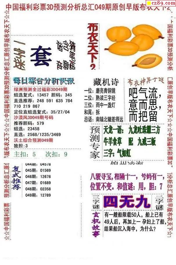 早版布衣2026049期3d图谜