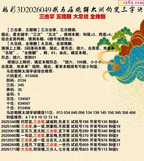 大总统解26年049期3d太湖钓叟之 全推翻