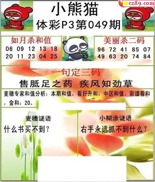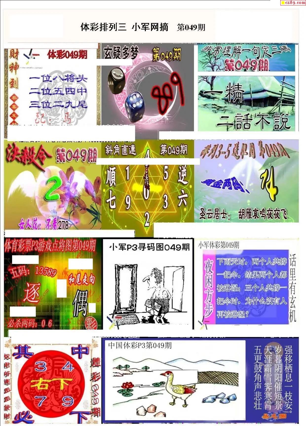 2026年049期牛彩网体彩P3画迷图谜汇总分享