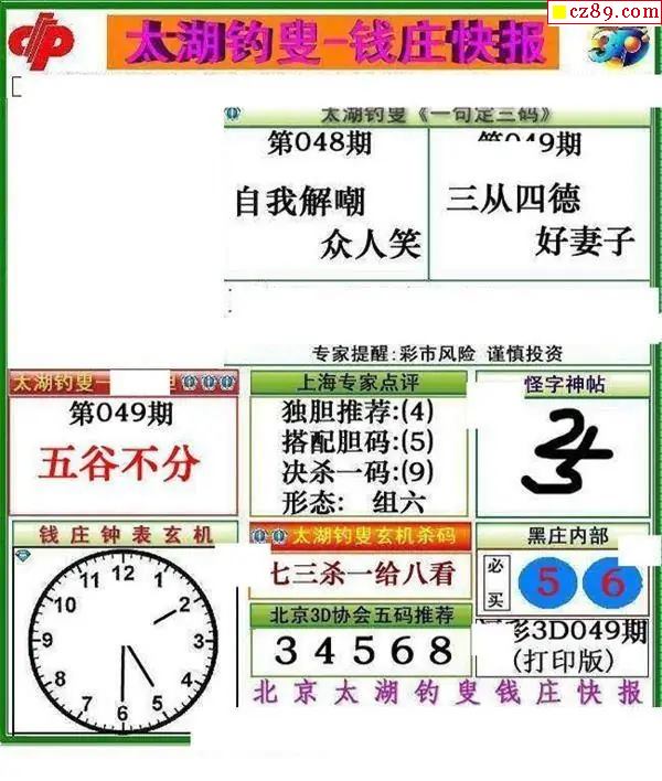 钱庄快报2026049期3d图谜