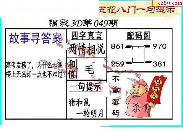 福彩三帝定三码049期3d图谜