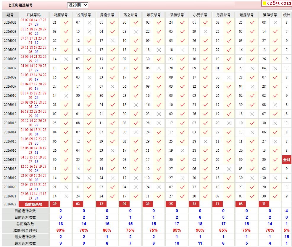 七乐彩2026022期流光岁月杀码图谜 10中4