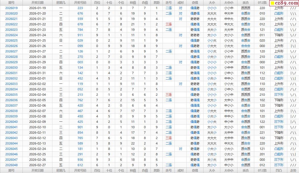 26年049期福彩3D综合统计表