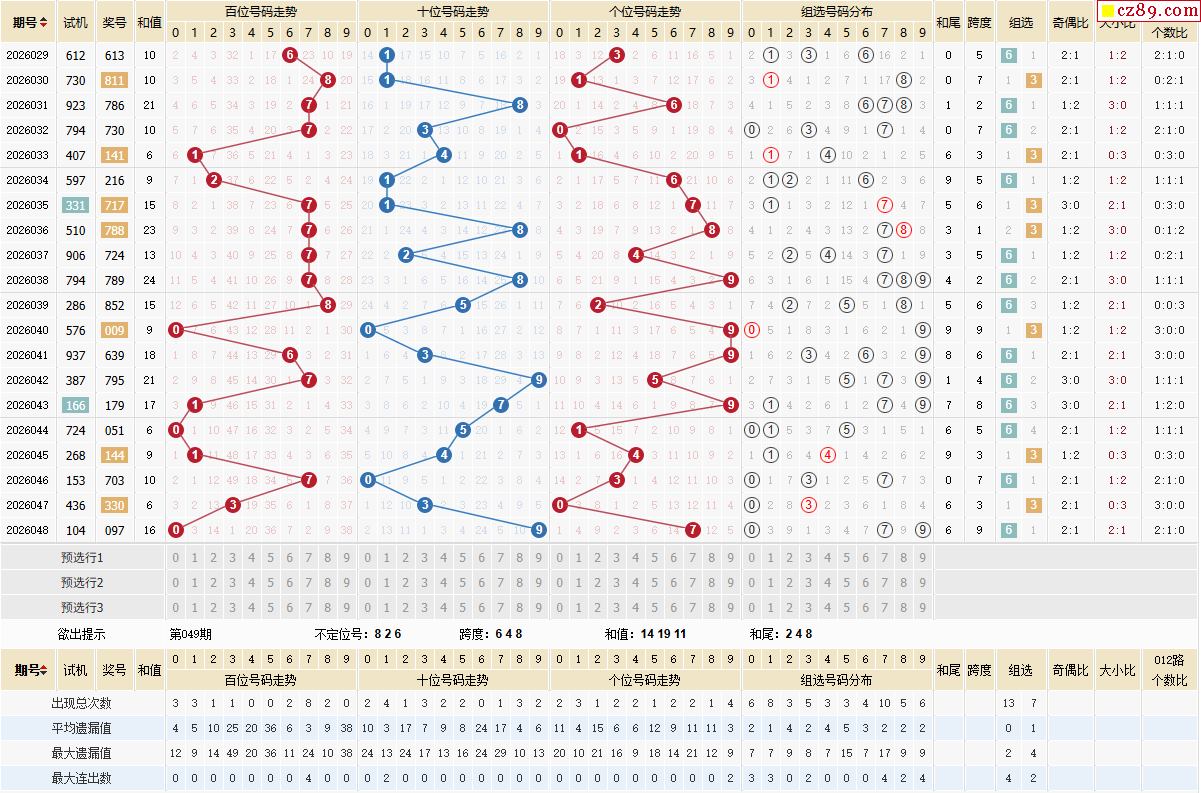 26年049期彩宝贝专家体彩P3杀号定码图表