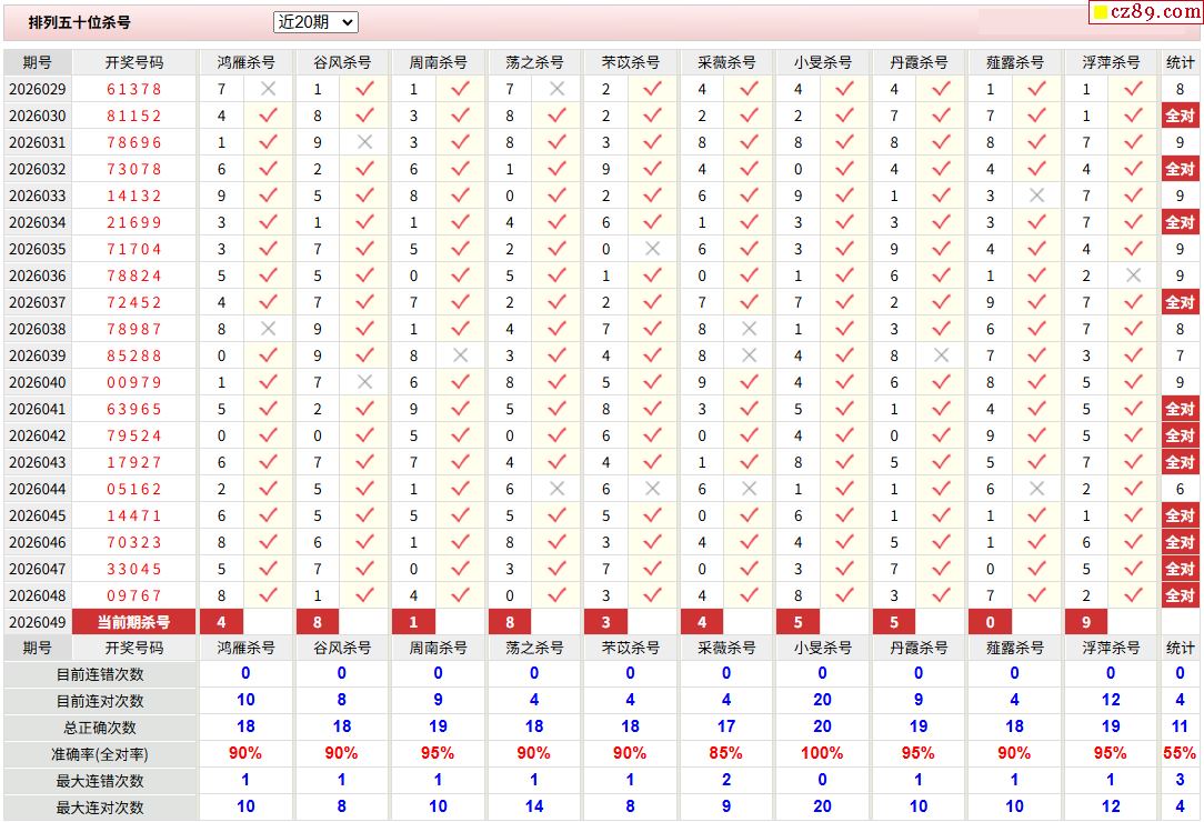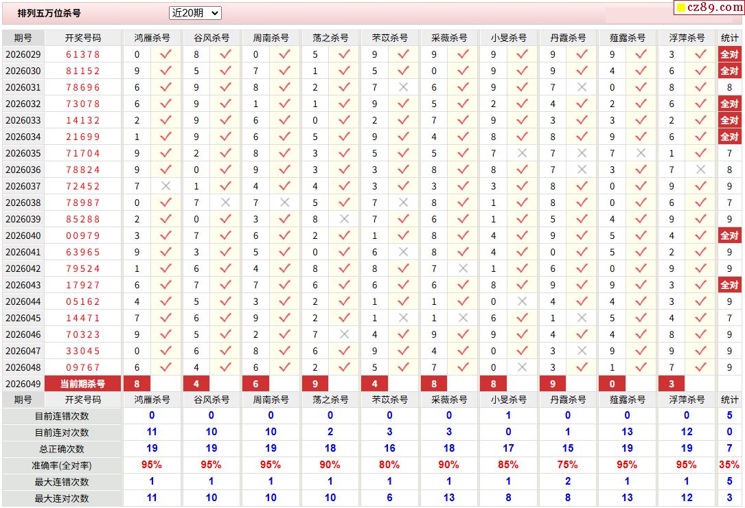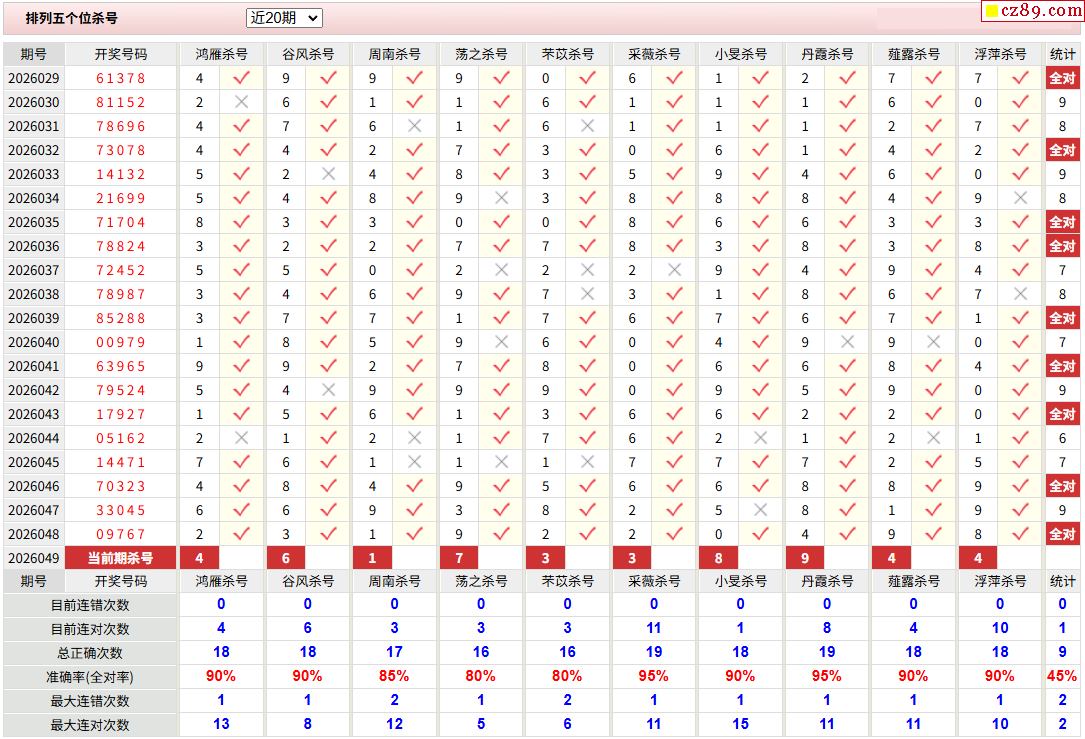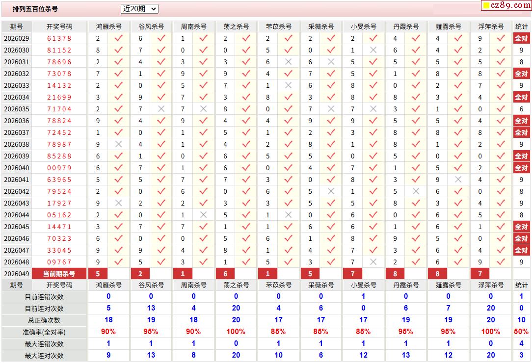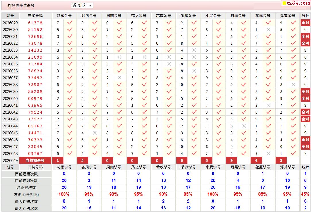 049期彩票专家体彩P5杀号推荐图表