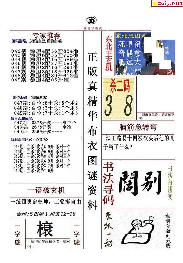 老夫子布衣2026092期3d图谜