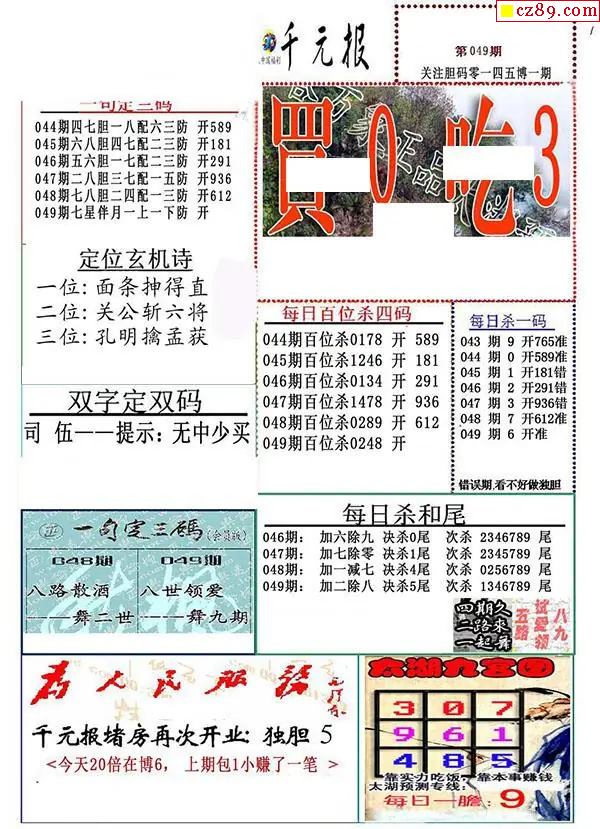 2026049期3D图谜汇总(七)