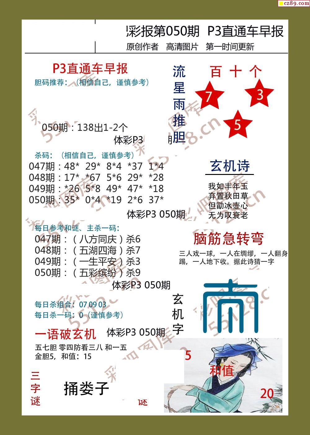 直通车早版050期体彩p3图谜