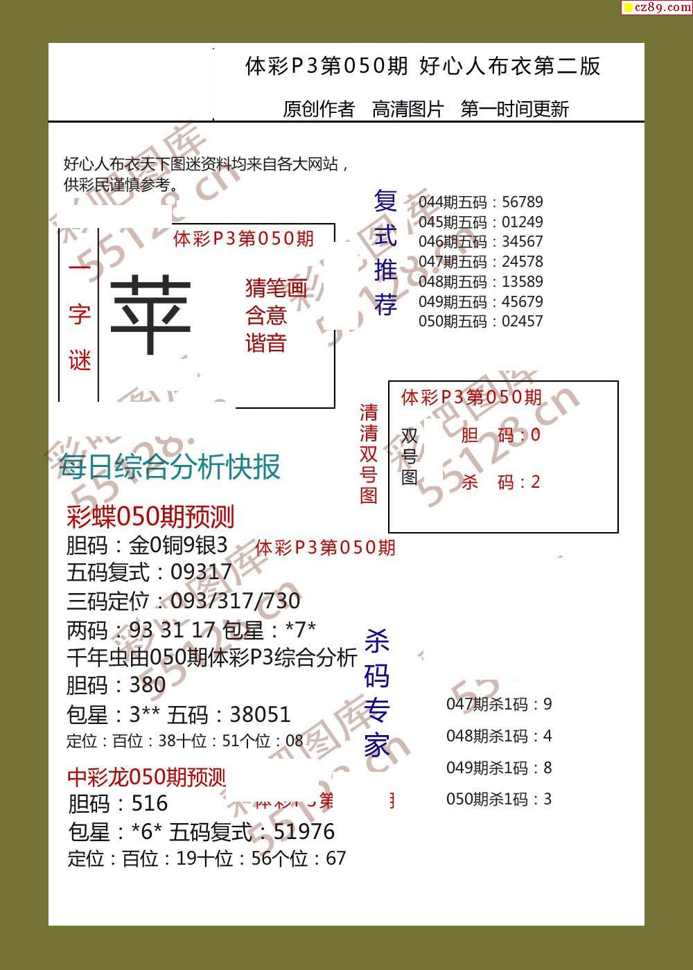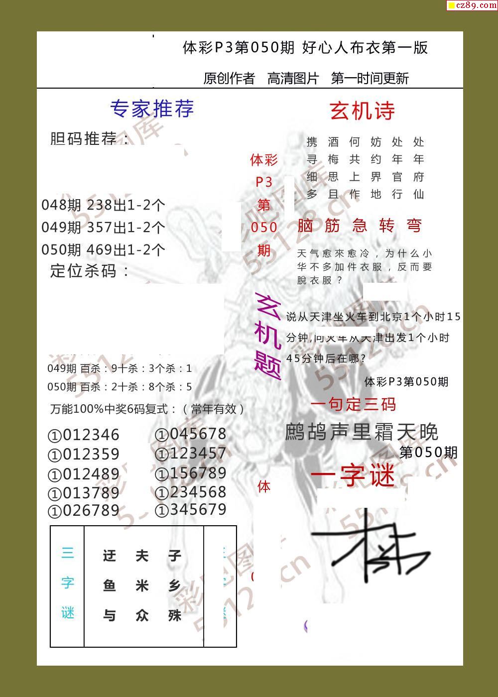 体彩P32026年050期 北盟天机图+p3仙机图谜