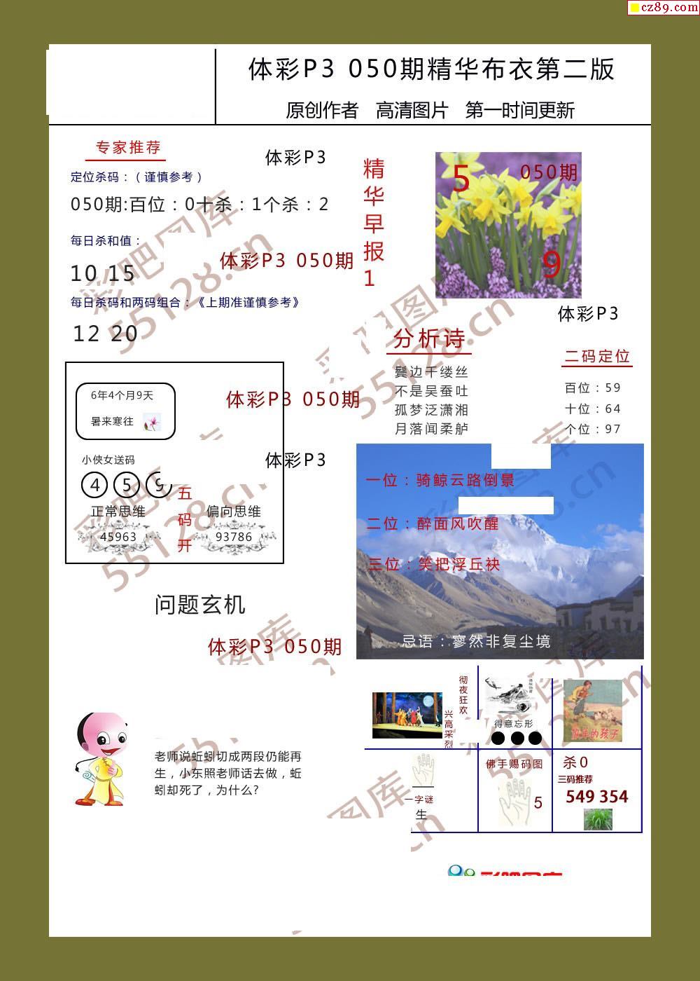 体彩P32026年050期 北盟天机图+p3仙机图谜