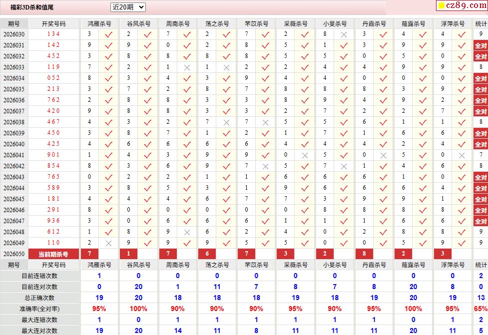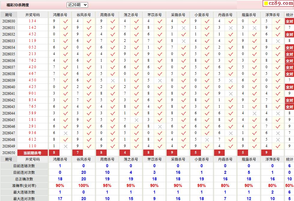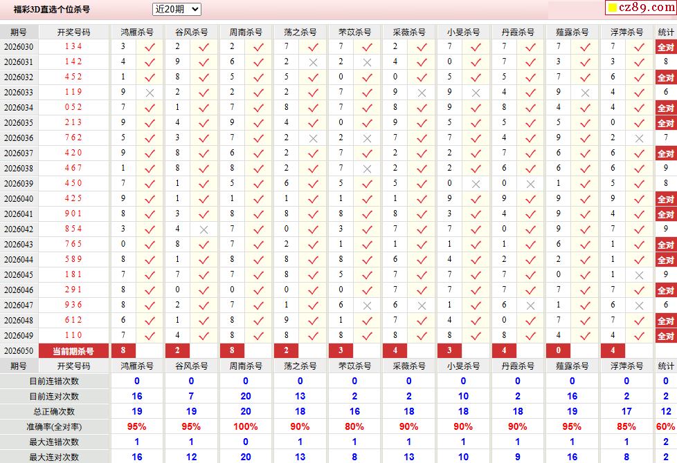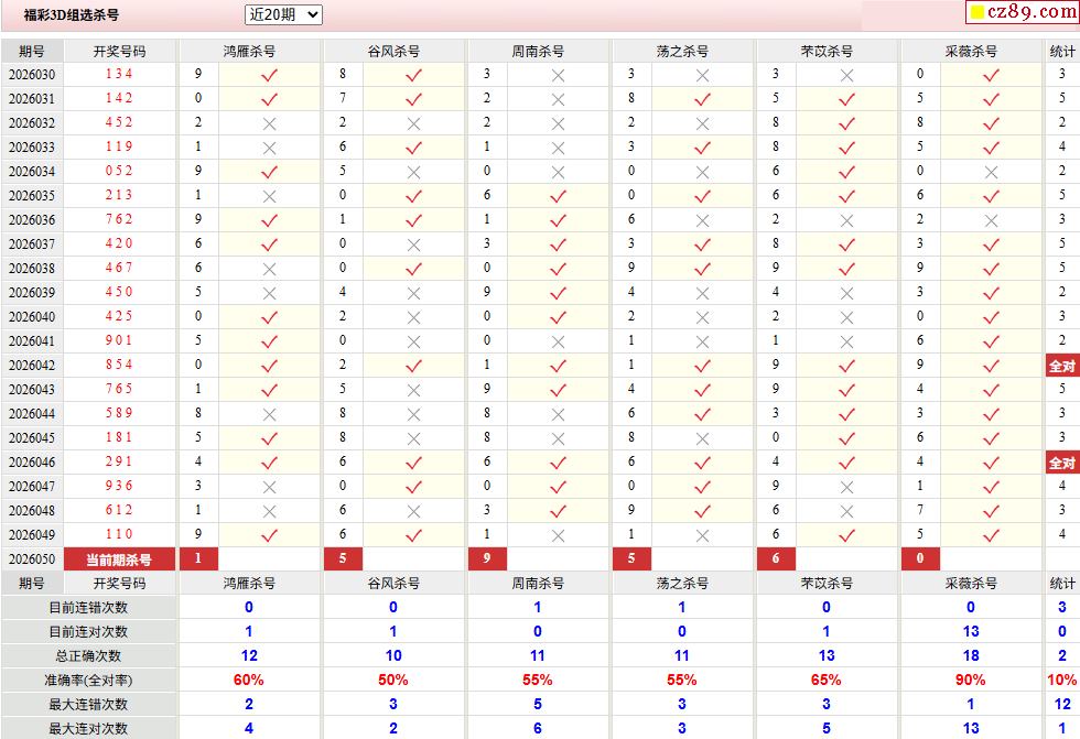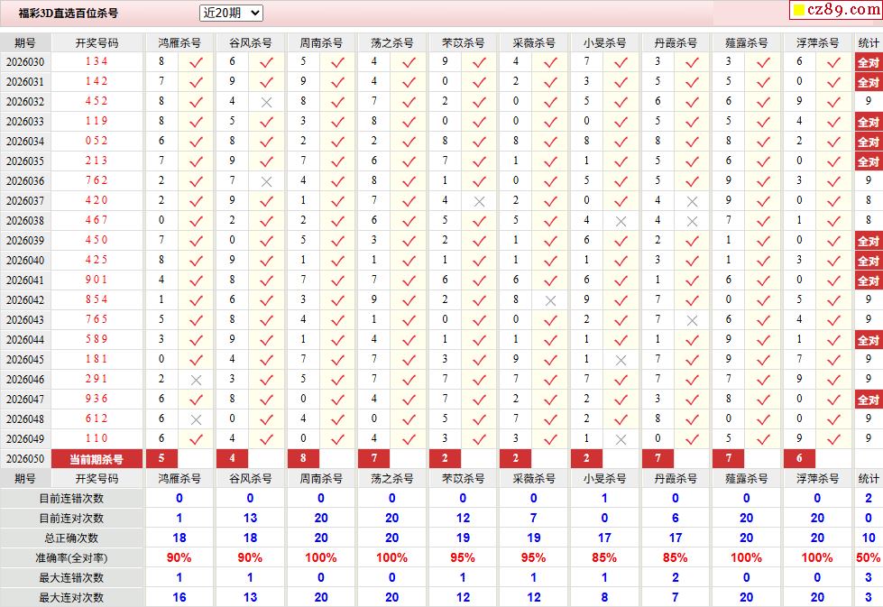 26年050期彩宝贝专家福彩3D杀号定码图表