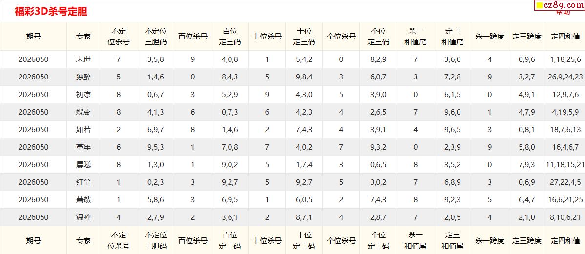 26年050期彩宝贝专家福彩3D杀号定码图表