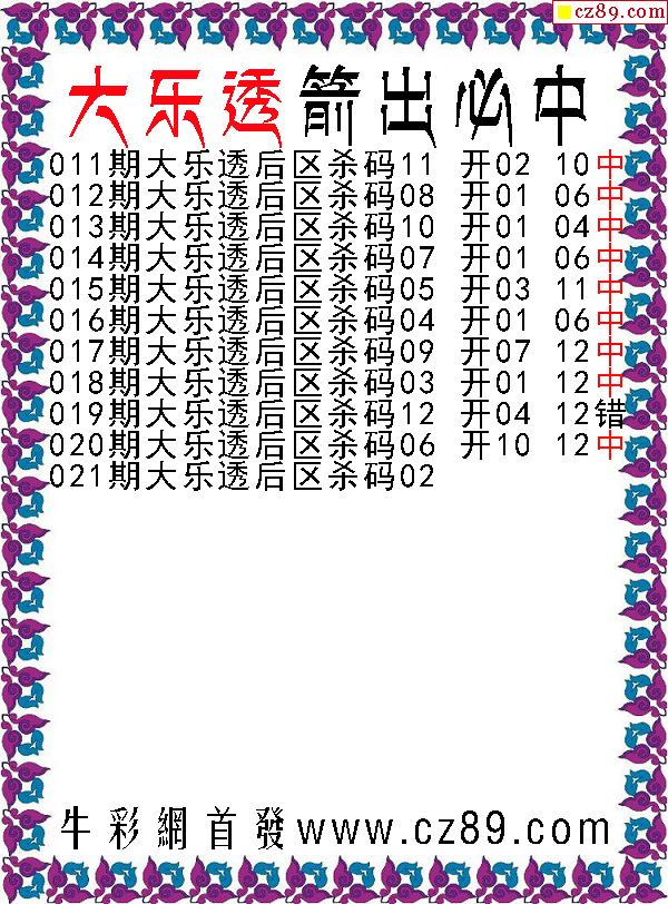 大乐透2026021期箭出必中后区杀号图谜 10中9