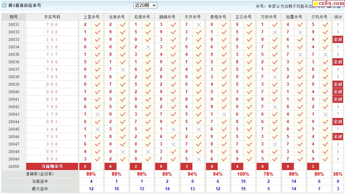 26年050期彩宝贝专家体彩P3杀号定码图表
