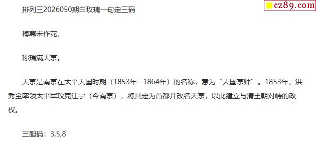 白玫瑰排三一句定三码26年050期