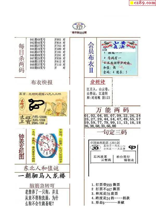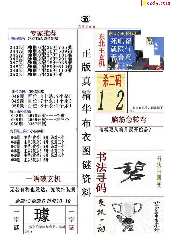 牛彩版3D字谜彩报图26年050期打印版