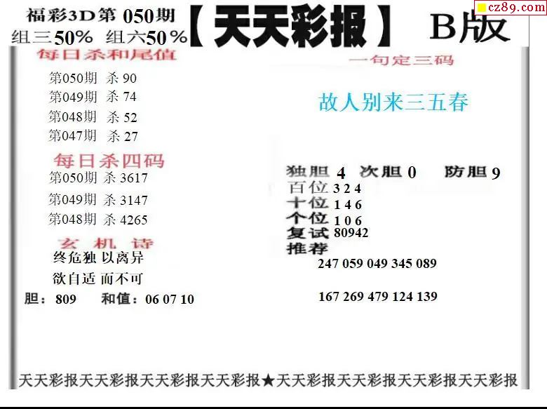 福彩3D2026050期图谜汇总