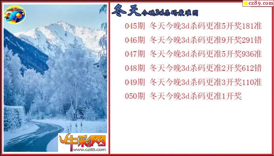 26年050期3d 冬天今晚杀码精准图
