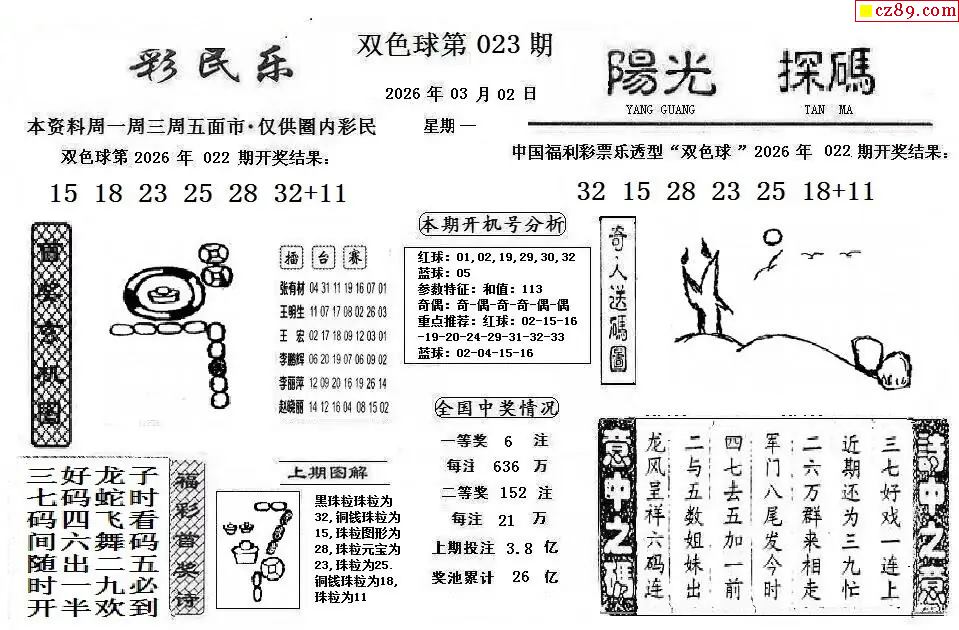 双色球2026023期 彩民乐+阳光探码图文版