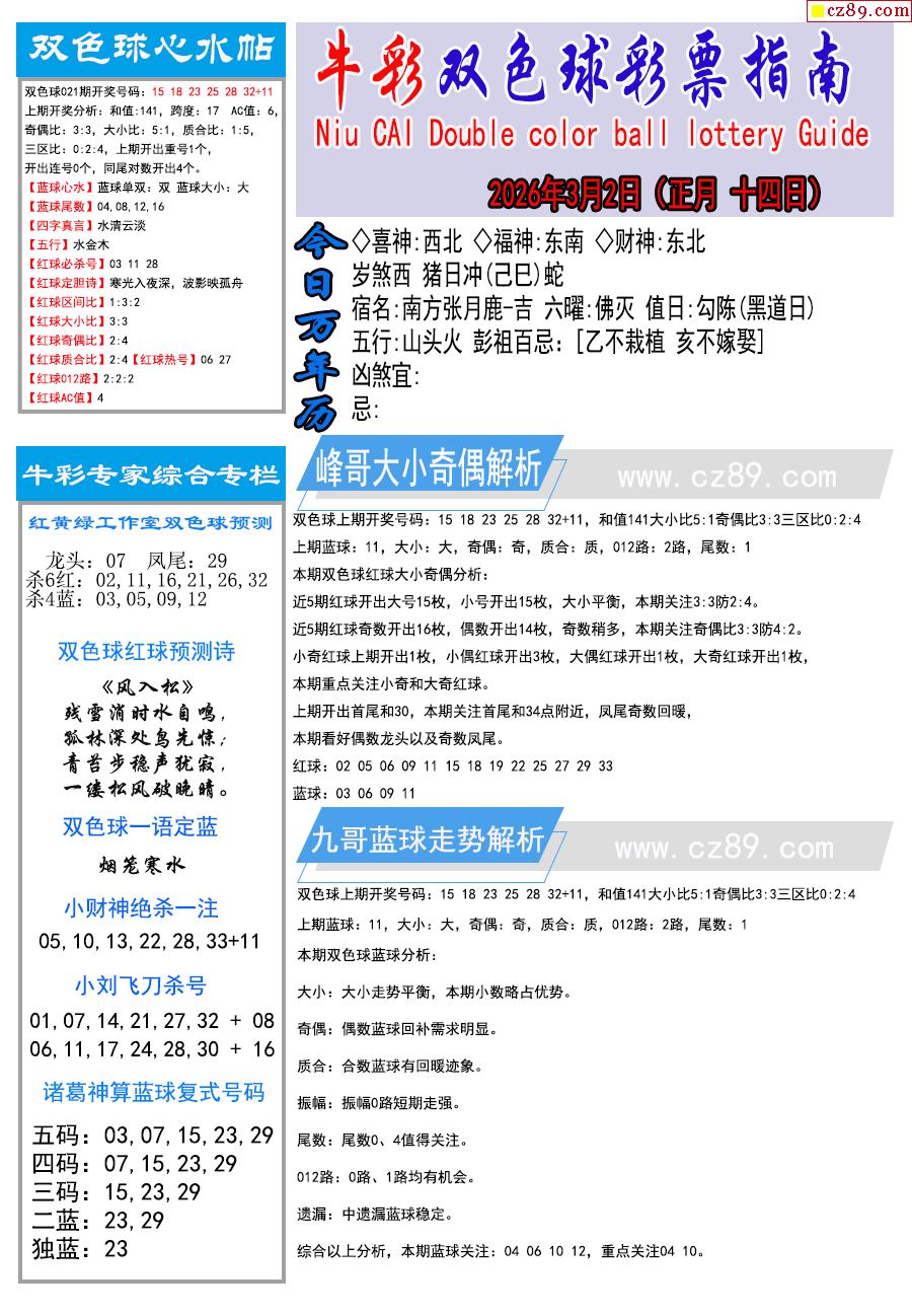 26年023期双色球彩票指南【牛彩版】