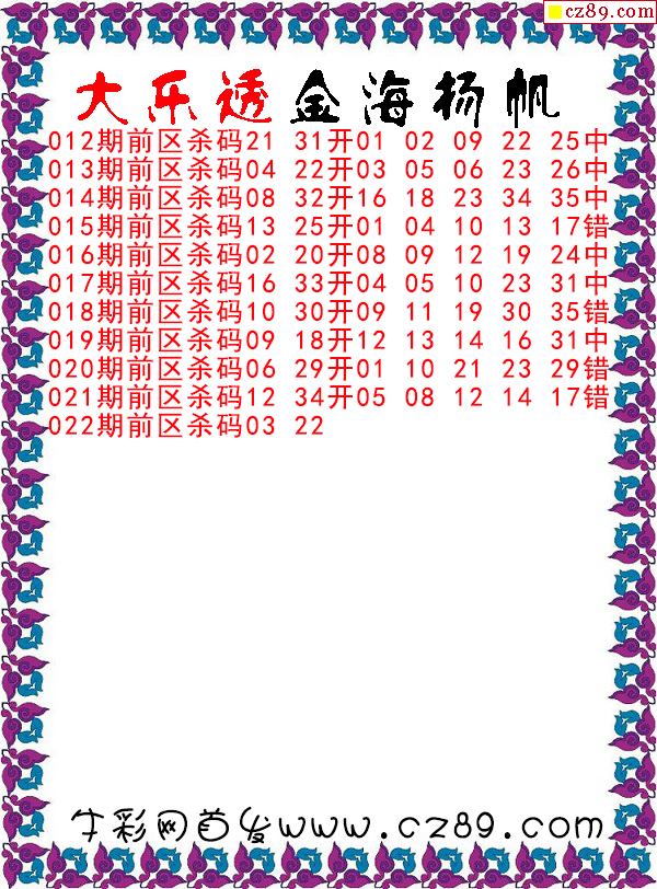 大乐透2026022期金海扬帆前区杀码图谜 10中6