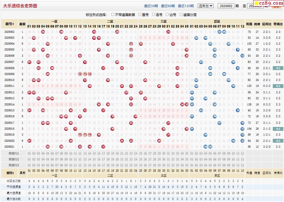 26年022期体彩大乐透近期走势图分析