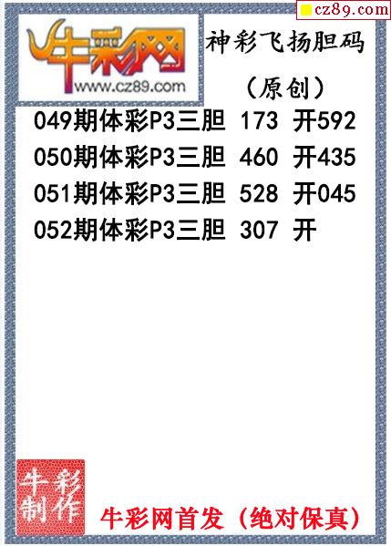 海城胆神心跳一码052期体彩P3图谜