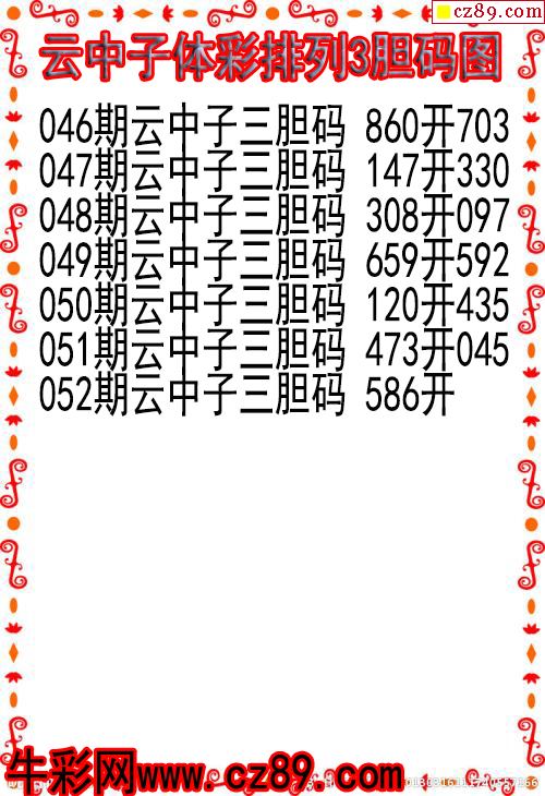 26年052期云中子体彩排列3胆码图