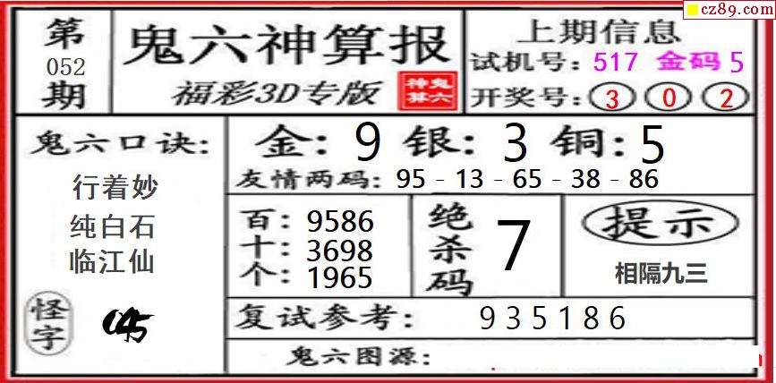 鬼六神算2026052期3d图谜