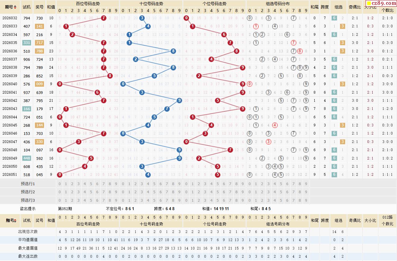 26年体彩排列三·052期 胤运综合预测