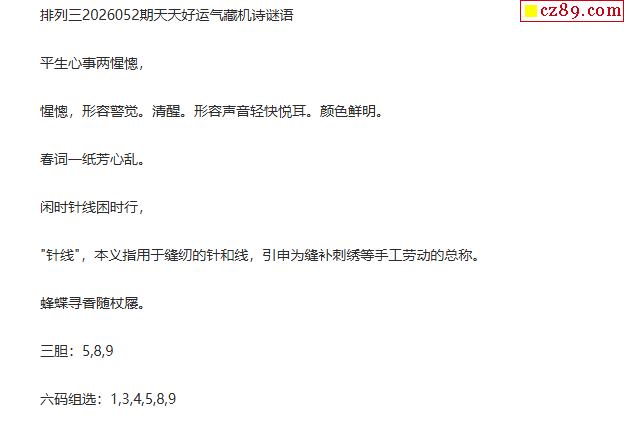 2026052期排列三观胆青蛰一句定三码