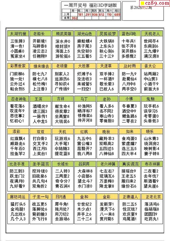2026052期福彩3D图谜汇总