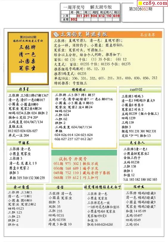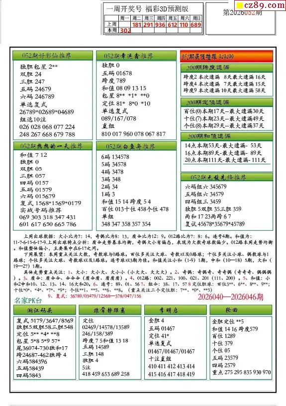 牛彩版3D预测彩报图26年052期打印版